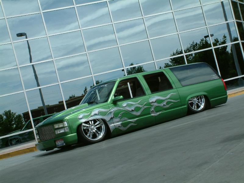 bagged and a stock floor body drop TUBLAR CONTROL ARMS FROM KUSTOM WREKS AND CROSS DRILLED ROTORS AND STEEL BRAIDED BRAKE LINES
