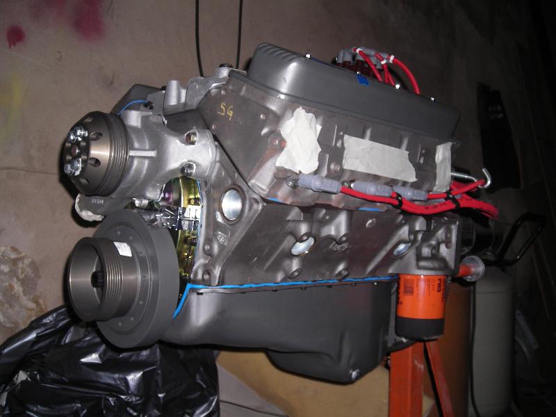 puttin a new 350 it with a few mods done to it. Holly intake, JBA shorty headers, edlebrock 4brl carb. Installed by Steve @ SECTION 8.