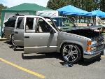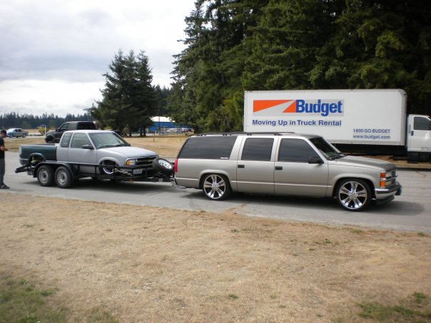 Belltech 3 inch drop springs and 2 inch drop spindles. DJM flip kit with raising shackles for a 5/7.5 drop. Helper bags on the leafs for towing.