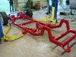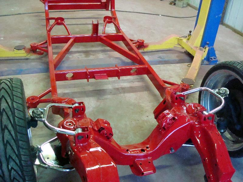 ready for paint and body frame is done sandblasted and painted looks pretty and shiny