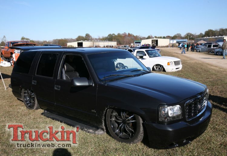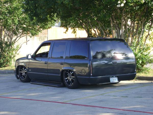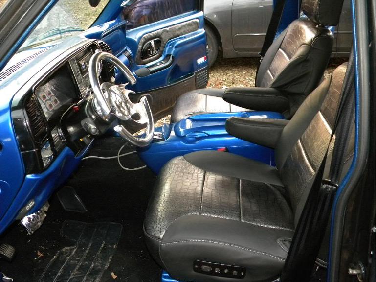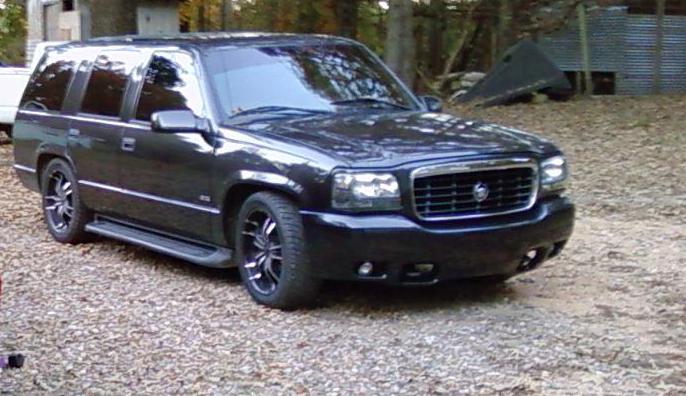 "01" Escalade conversion, Shaved Taillights w/ Cadillac Deville's molded in, Molded Roll pan, Painted Charcoal Blue Metallic.