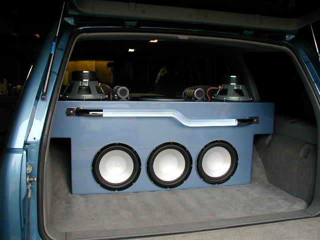 15.Custom subwoofer enclosure: 6 chamber 3/4 MDF screwed, glued, nailed, caulked, and sprayed with 2 coats undercoating. Custom painted the color of the truck. sanded and polished to a showroom luster.