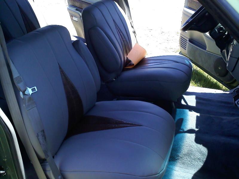 Gray ultra leather with tan alligator skin inserts. Black suede headliner.