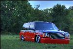 red and black with tribal shit dividin the colors