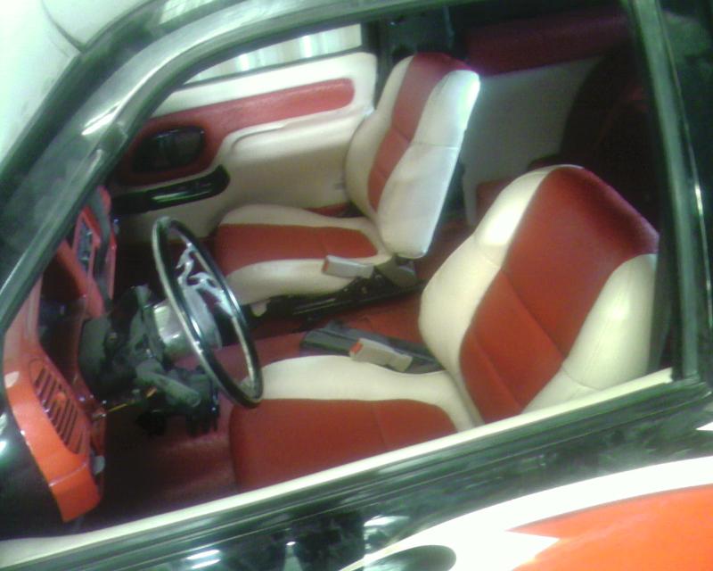 ostrich floor seats and headliner with bone vinal. and some painted plastics and all dash as well.