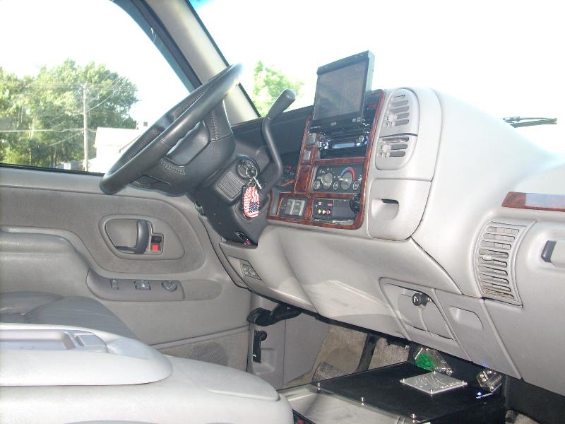 Jensen 7"flip out touch screen dvd player, 2 MA Audio amps 800 watt 4 channel and 800 watt mono block,Kenwood mini eq mounted in center console. sony 6.5" mid and tweeter combo in the doors factory 4x10" 2-ways in the rear(for now)2- 12" infinity subs. soon to have a pair of 8" 3 ways in back for more mids in the rear.