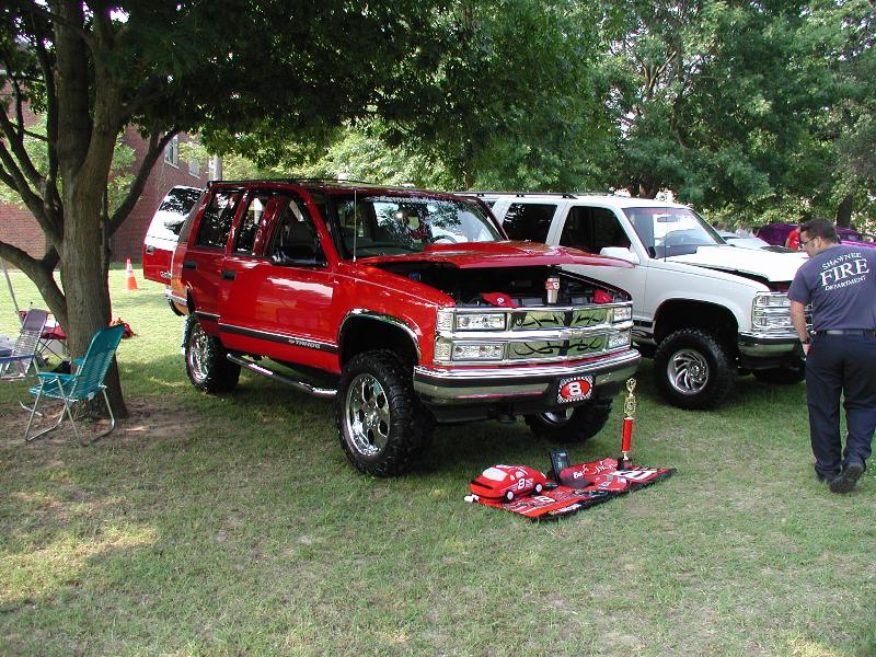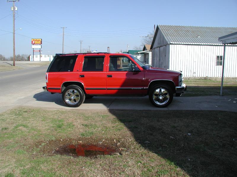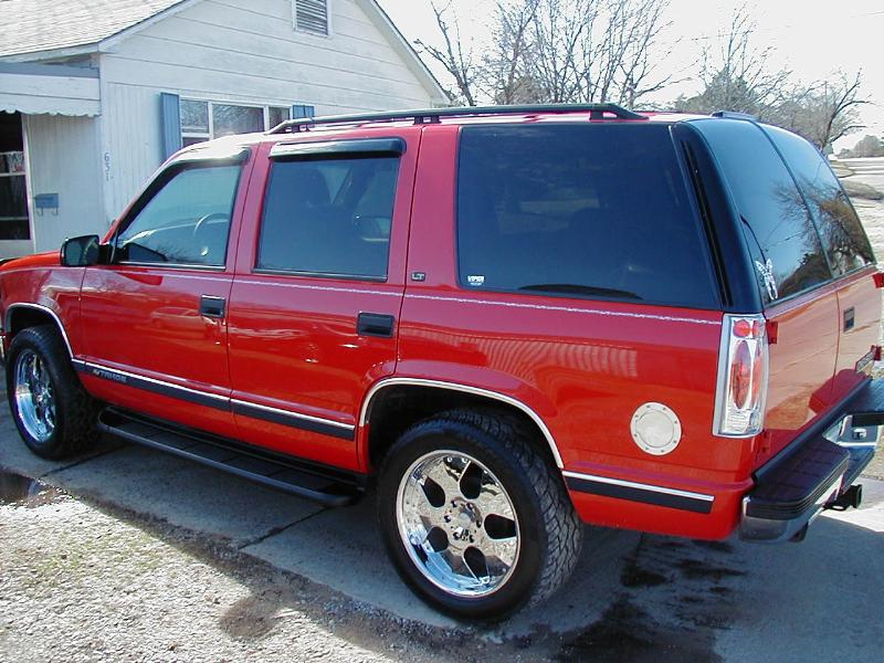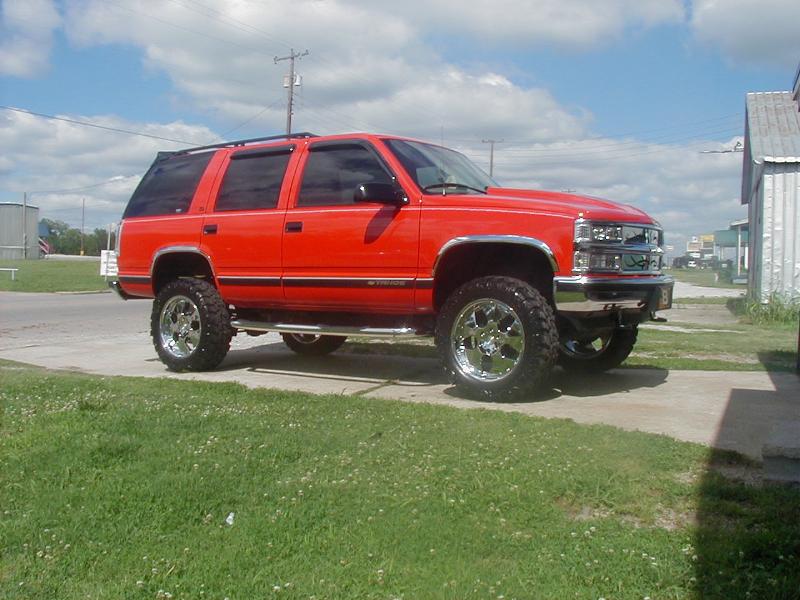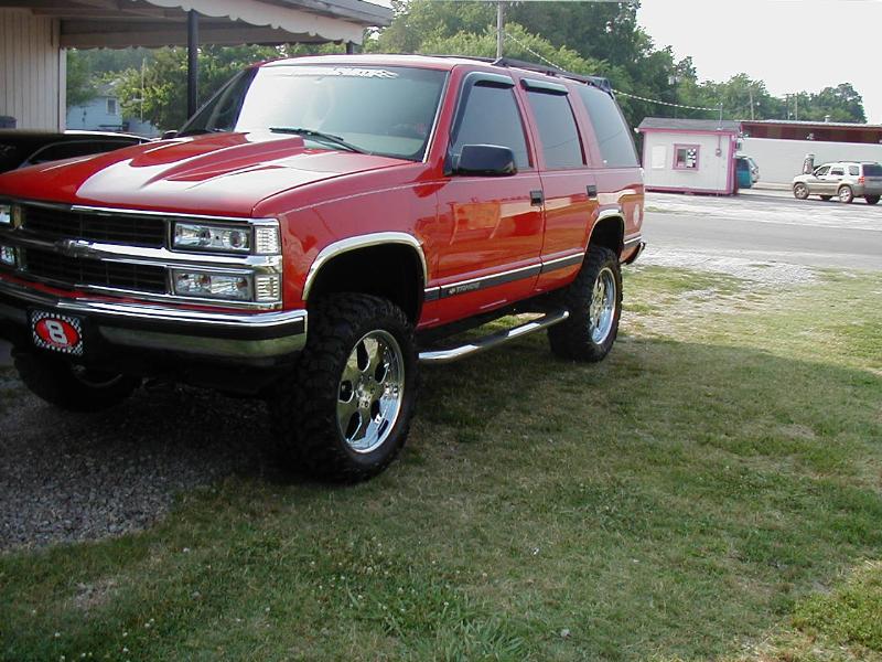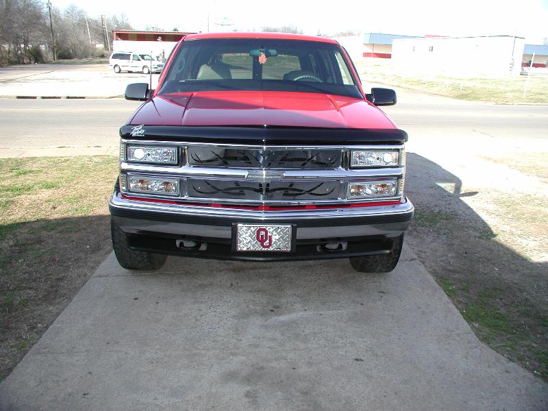 Cowl hood, custom tribal grill, euro's all the way around, chrome fender trim, chrome nerf bars, billet gas door, and a Wind Jammer fin.