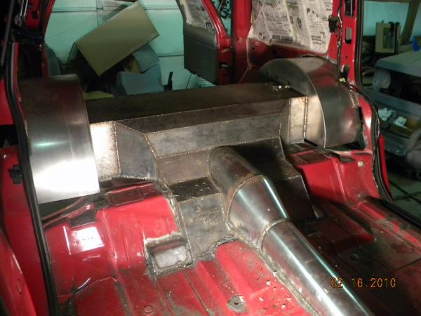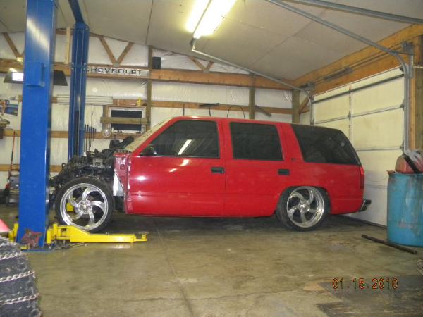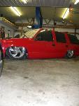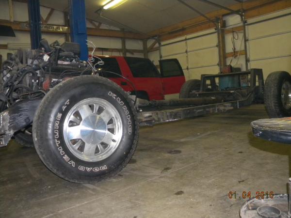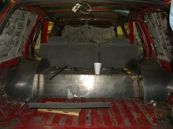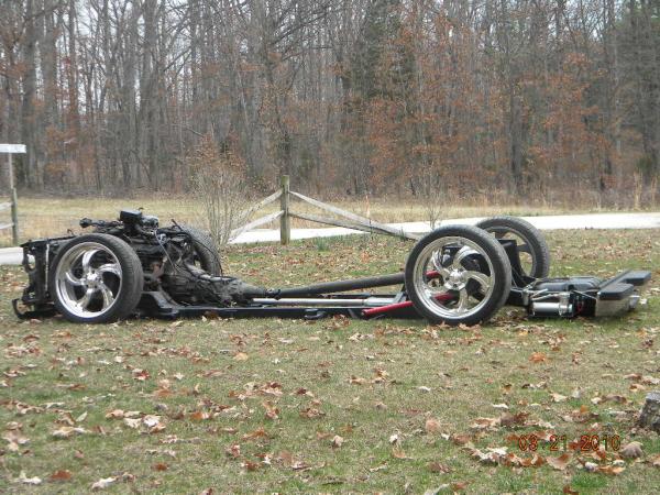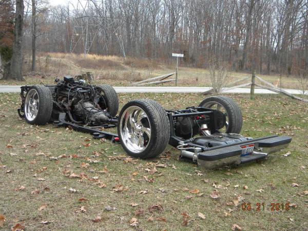 move fuel cell toward rear axle 2", roll pan molded, shave rear handle and roof rack holes, relocate rear fuel lines and move lower link bars inboard of frame, 96 Impala rear axle narrowed 6", rebarrel rear wheels to 6" lip, shave gas door and relocate behind driver taillight, single color paint (color undecided), lq9 with z06 heads cam and intake with 4l80e