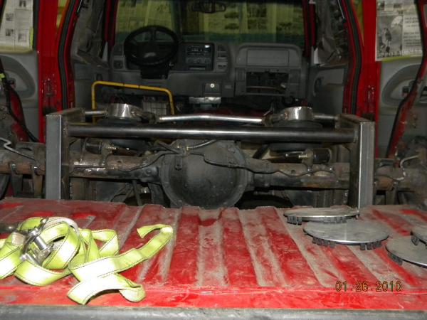 Rear: Triangulated four link, Airlift 2600s on upper bars,