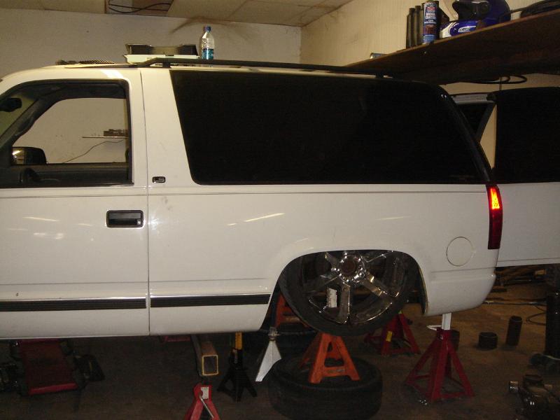 bagged front and back, custom lower control arm, triaangulated four link, stock floor bodydrop, set up to lay on 24s....