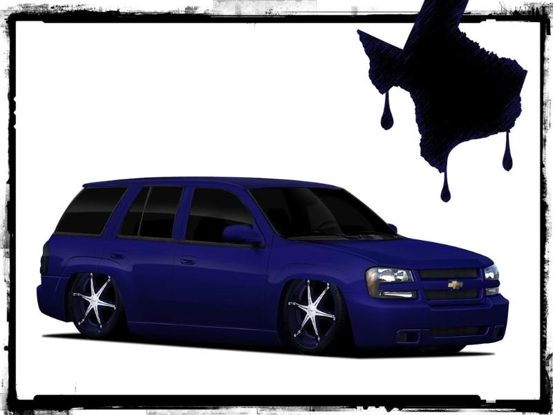 blue trailblazer on 22s with smoked tail lights and third brake light