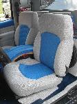 fully tweeded out in gray and blue, custom console, and custom sub box. flammed dash w/ blue flammed gauges and a flame rear view mirror front trenz.