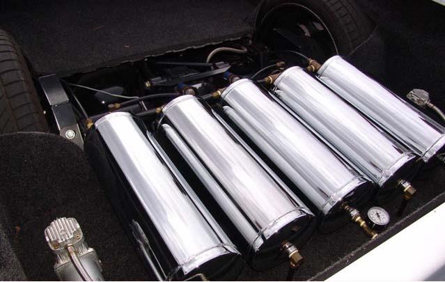 roadgrater with air ride techs coolride front setup- 2 vivair 450s all 1/2 valves and lines 10 switch box. 5 chrome 3 gallon tanks in bed. relocated everything underhood and removed abs,ac,heat and installed hydroboost. tubbed firewall and lays frame on 22"s pushes kit off when layed out all the way