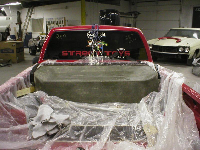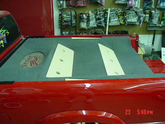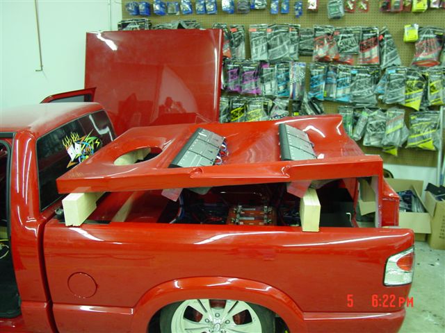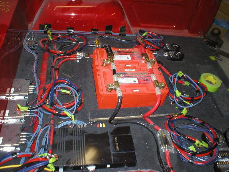 CD player...4" coax in the custom fiberglass kicks.. stinger battery.. subs are coming