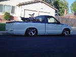 Shaven door handles, third brakelight, clears in front, M3 sprot mirrors, star fbi roll pan taillights, shorty antenna. custom two tone midnight blue and alpine white broken up with custom orion silver flames pinstriped with process blue.