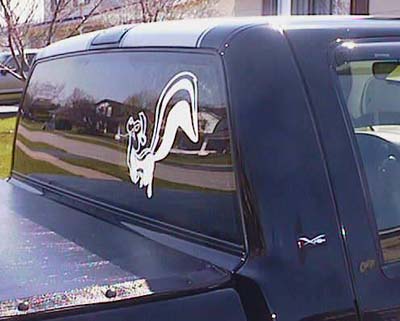 > Pepé LePew decal on back window