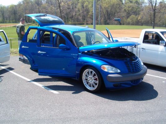 Electric Blue Pearl With Custom Painted Window Trim and Mirrors, Custom Turn Signal LEDS in Mirrors And Blue LED Accent in Hatch Latch