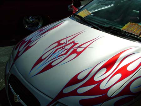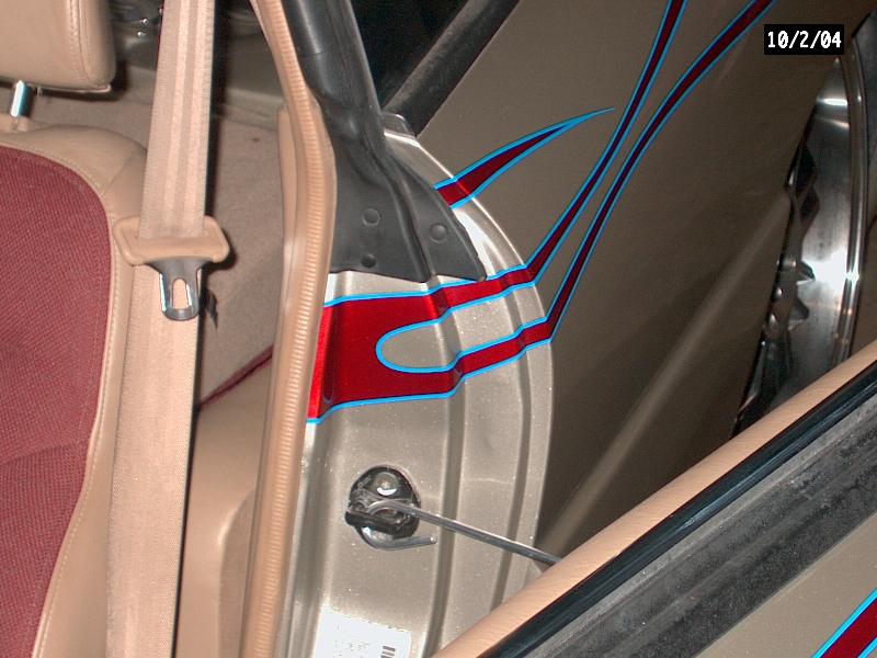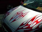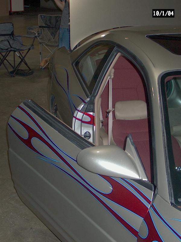 *Clarion TV Headunit *Clarion 6 disc changer (in glove box) *PS2 *2 PBX 12s *Audiobahn amp *Audiobahn mids and highs *Tsunami fuse blocks *All fiberglass speakerbox and trunk pan painted to match car with flames matching on trunk pan *ALL STEREO WORK DONE BY ScrapeN Customs (www.2scrape.com)