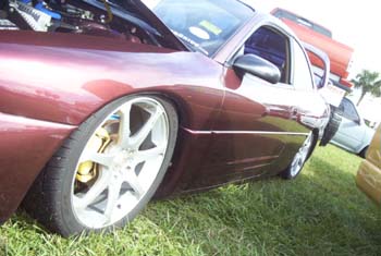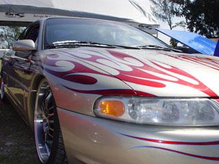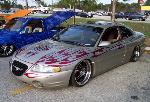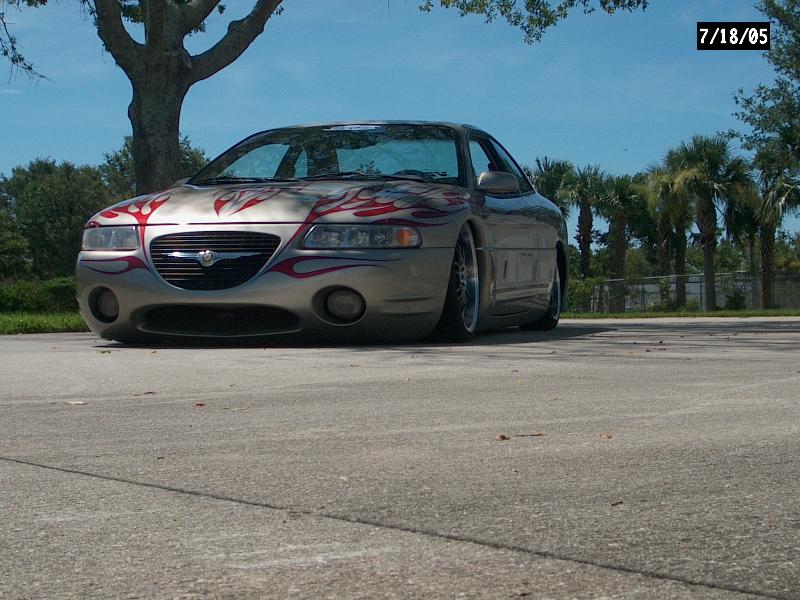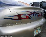 *Shaved emblems/logos *Frenched antenna *Shaved the fast and furious supra style wing *Shaved front turn signals *Wired headlights to blink *Body panels molded onto car *Shaved third brake light *Shaved stock wing *Removed plastic off trunk lid and replaced with steel *Shaved trunk lock *Shaved backup lights *Shaved body line around tag box *Shaved taillights replaced with custom made flame taillights *Custom mixed silver base with House of Kolor Candy Brandy Wine Flames *Flames hand striped in blue *Graphics run in the jams *ALL BODY & PAINT WORK DONE BY Volusia County Customs(Todd Fischer & Doug Lafland) *Painted brake calipers