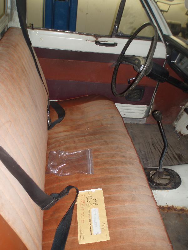 PLYWOOD FLOORS, AND WOREOUT ORANGE BENCHSEAT