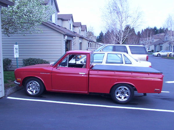 viper red paint, tinted windows,shaved hood emblem,antenna,bed cover
