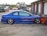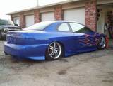 shaved in bodykit, blue pearl with orange flames(PAINTED BY 97PROJECT), remote controlled windows and door poppers, diamond plated skid bar for those lovely sparks, shaved body lines, door handles, antenna, reverse lights, and gas door, tailight for gas door