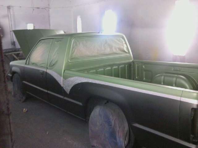 bagged lays frame 4link rear custom lower control arms in front front bagged to fit 22s rear not can fit 19s with no holes in the bed possible bodydrop in the future...