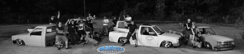 smoothed and primered frame upper controll arms pie cut, lower controll arm with custom radius arm, sectioned front crossmember plated with 1/4" plate, re6 front and re7 rear bag, 7 gallon air tank, bluzluft 1/2" valves, 1/2" air line, reverse 4 link, raised stock gas tank, drop spindles, 2 smc water traps, 2 viair 380 compressers