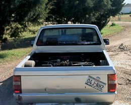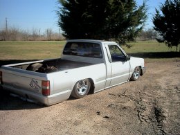 shaved tailgate, handle, door handles, antenna, gas door, emblems. flames etched in back window, custom drug off rollpan