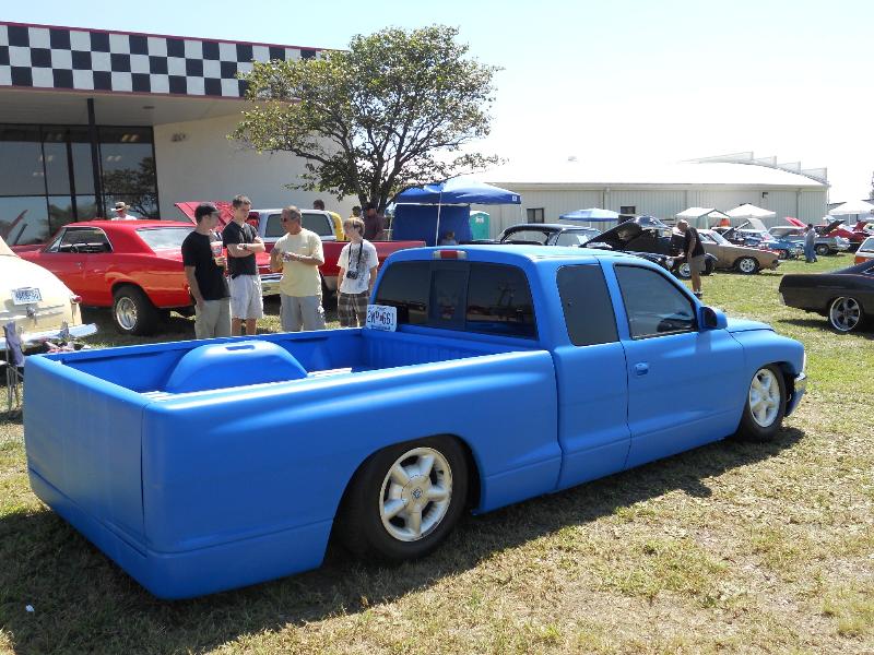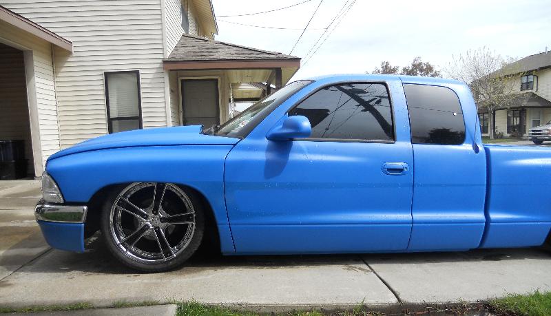 clear corners, cowl hood,shaved taillights, rollpan,smooth tailgate raised bed floor, frenched attena, hrf speed blue, clear scalops