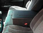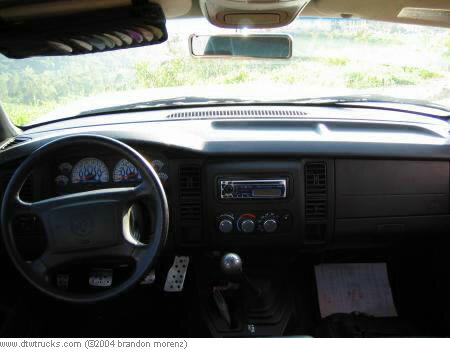 billet pedals, billet ac knobs, billet mirror, blue flame white face gauges, cb radio w/ pa sytem, blue neon light, blue dome lights, chrome shift knob, chrome switches for neons and strobes, painted panels black and grab handles and seatbelt bolt covers blue, custom center console with plexiglass window holding the subs