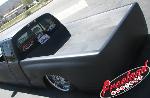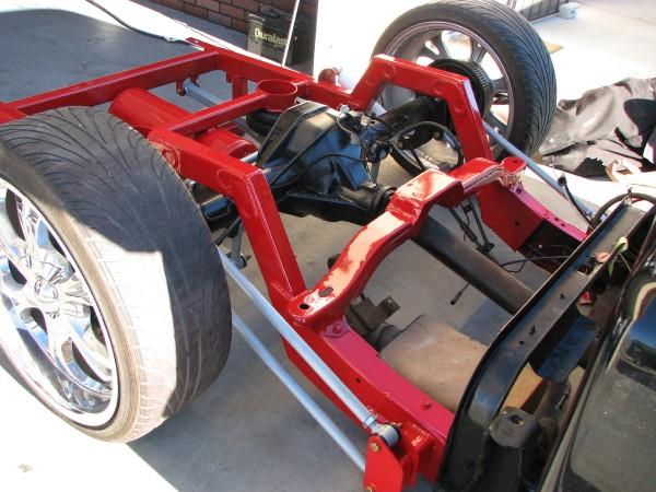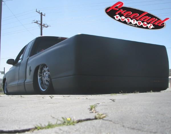 slam re7s up front and re8s in the rear with a parallel 4 link pan hard and cantilever setup in the rear. back half. traditional body drop on deep dish 20s. front suspension shortened, rear end shortened
