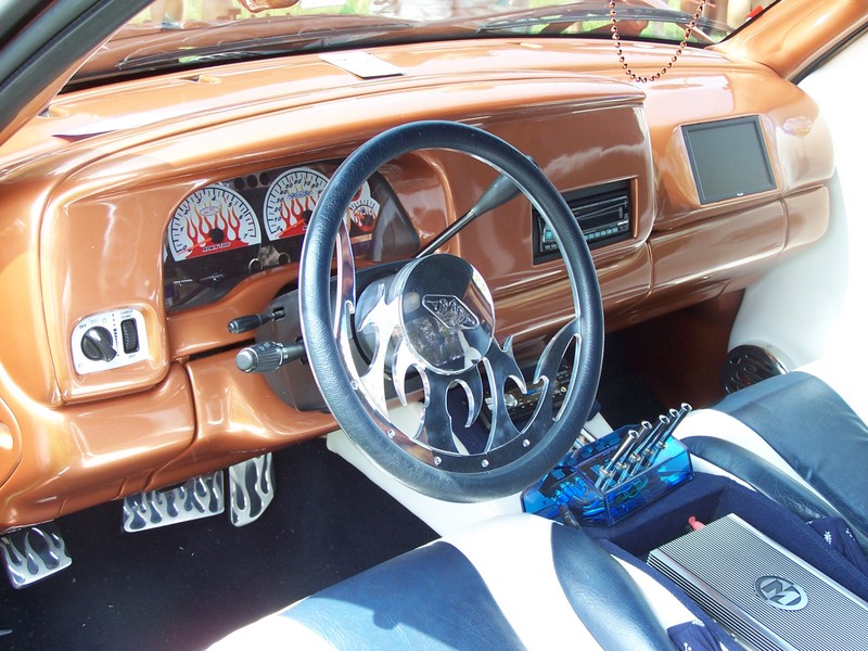 Billet, Painted, or uphostered...Orange/Navy/White.....Custom built console.....Everything has been shaved out, molded skulls, brushed, etc.