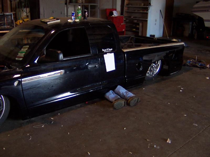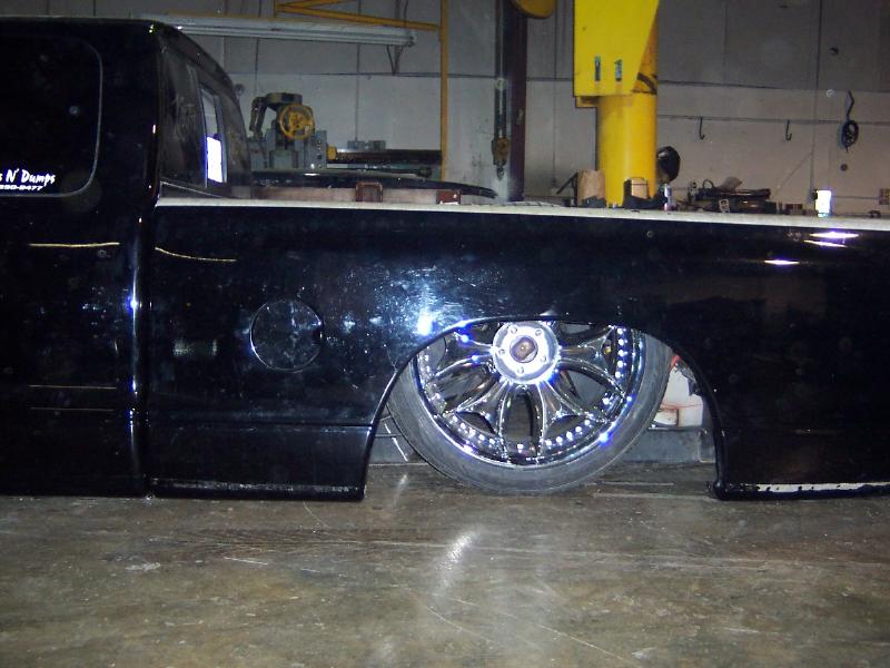 3 3/4" Stock Floor Body drop, suicide hood suicide doors(under way real soon), Cervinis ram air hood, stillen grill shell and bumper cover(oops dragging body will break things)OH well. Gemtop bed cover(wont' fit any more), z'd front clip 2"