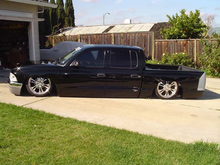 Removed emblems, billet grille, shaved antena, tinted windows, roll pan, license plate in the tail gate, shaved tailgate handle, and caddy tails.