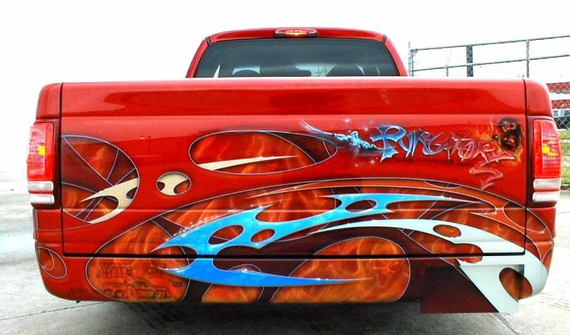 Fully shaved, repainted flame red (PR4), custom graphics by Charles "The Kid" Armstong