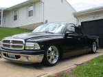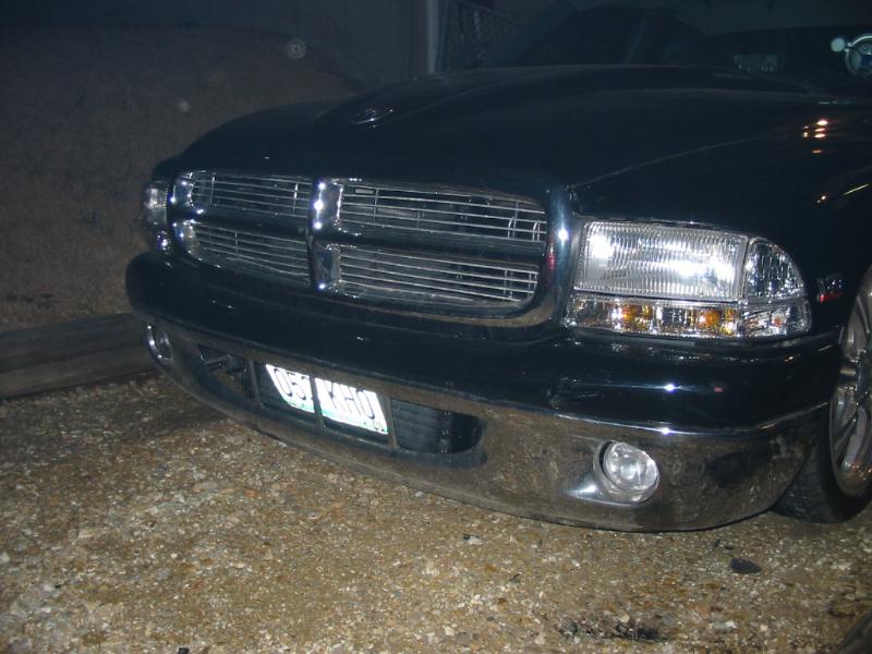 shaved door handles,taligate, gasdoor.Cowl induction hood, shaved bumper smooth roll pan, lexan back window with license insert. Chrome front valance.Winter 2002 stock floor body drop in progress, triangular 4-link already in, starting to cut..wil update with pics soon !!