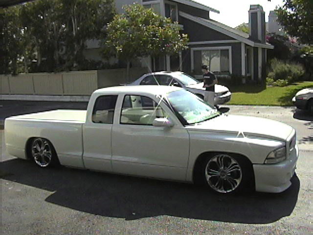 SHAVED:door handles, tailights, tailgate, body lines on tailgate, gas tank, third brake light, rollpan, side emblems, hood emblems, antenna. Cadillac tailghts, stillen front end with upper and lower billet grills COLOR:diamond pearl white