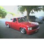 dodge red,shaved passenger door,billet antenna,fiberglass bed cover