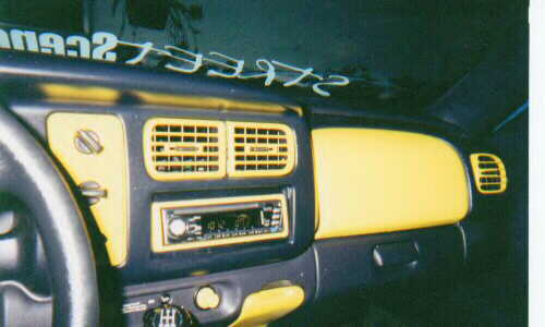GREEN STROBS IN AIR VENTS, AND HEAD LIGHTS & TAIL LIGHTS. AIR VENTS ARE PAINTED YELLOW ALONG WITH THE ASH TRAY,GREEN NEON (LAVA TUBES)ALONG BACK WINDOW.