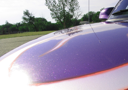 Dark purple paint job with bluish ghost flames, brighten up engine compartment, eventually install airbags.