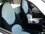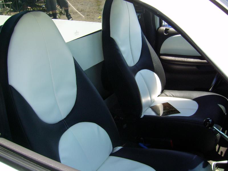 charcoal and white two tone leather seats, white paint on dash, console