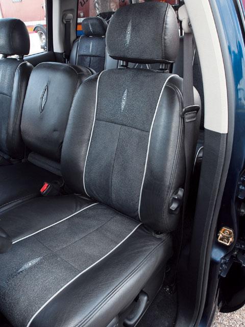 Arjona Upholstery, where they accented the existing cowhide upholstery with blue Stingray inserts,