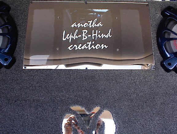 sony 7in. flip out w/ a 10 disc changer, 2 10in. audiobahn with the new kicker solo-baric grills painted the same as the durango mounted in the rear floor,audiobahn 400 watt amp mounted under plexi glass also in the floor. a 7 in. legacy flip down, pyle dvd w/built in tuner and a 1.5 power acoustik digital cap