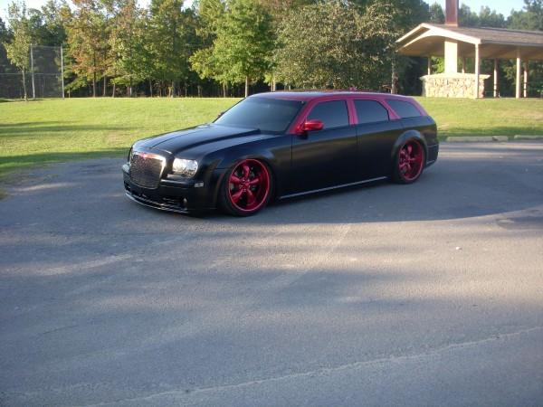 2TONE PAINT CANDY REDW/BASSBAOTFLAKES AND FLATBLACK,300C FRONT CLIP,SHAVED REAR WIPER,SHAVED DOOR HANDLES POWDER COATED GRILLE,SRT8 FRONT BUMPER AND 2"COWL HOOD, BLACKED OUT HEADLAMPS