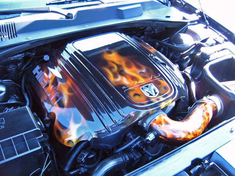 5.7 HEMI with Sidewinder Cam, Predator Tune, 75 Shot of Nitrous, Custom one off Flamed Engine Cover, 485 RWHP