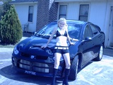 well its black, and somewhat scratched up from racing!, and got a dent in the fender from hitting a deer while going to see angela!,she also scratches the passengerside door with her belt...hmmm.... what else...those are mods! airodynamics baby!,