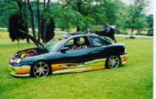 Painted on Graphics, Xenon body kit, Projector Headlights, aftermarket tail lights, Aluminum wing chrome dipped, shaved key hole, yellow underbody neon’s, sunroof, Dual stainless steel exhaust