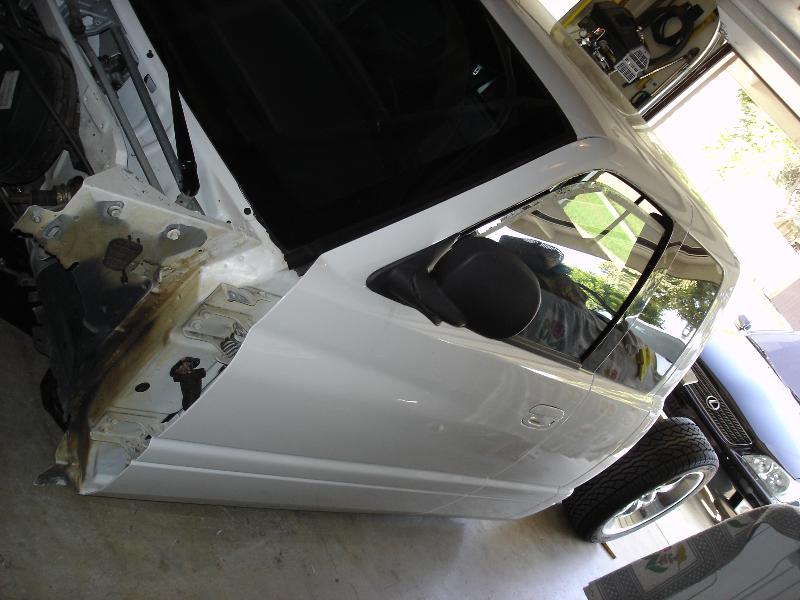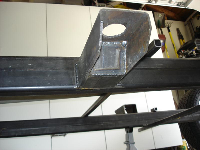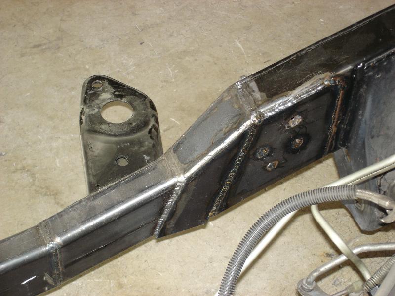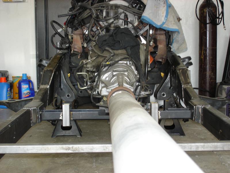 In process of 2 in stockfloor bd with SD tri-4link, z'd 1 inch to lay true frame, modified beltech tranny x member