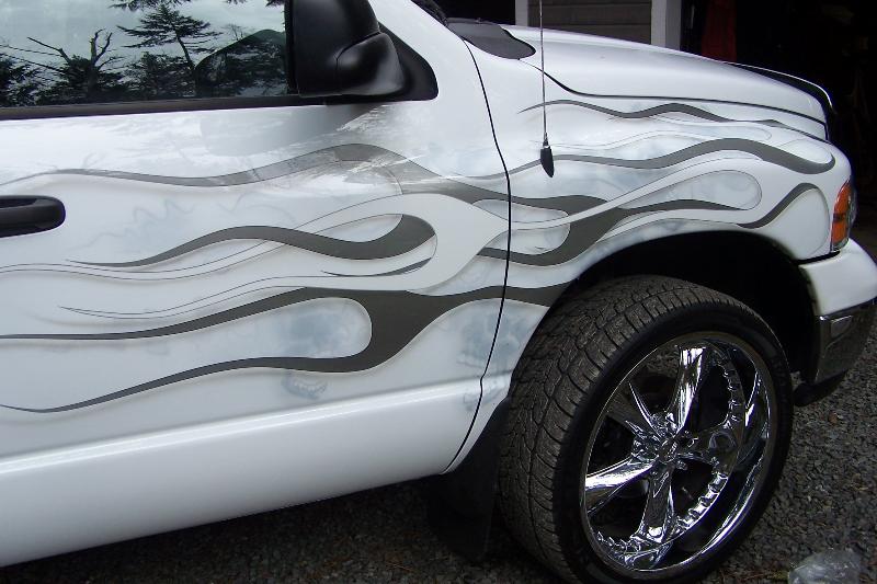 2 layer flames with airbrushed skulls, rollpan, billet grilles, 8000k HIDs